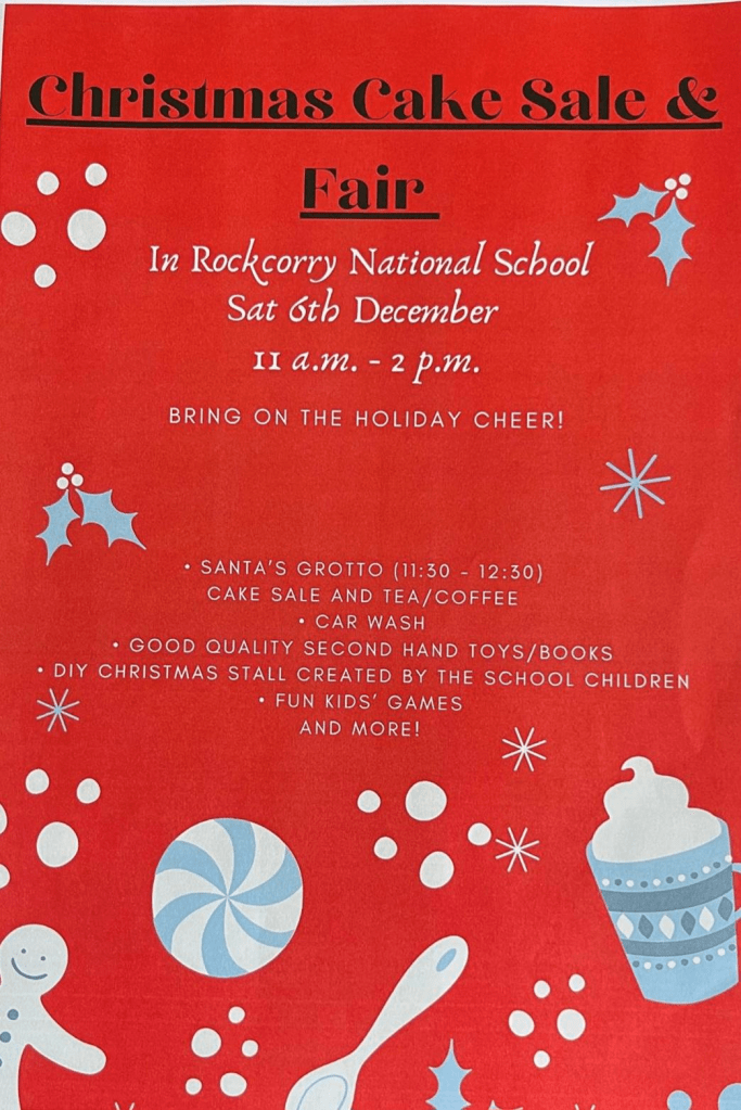 The christmas cake sale and fair returns to Rockcorry National school this year on Dec 6th. Sure to be lots of fun and a great way to kick off the holiday period